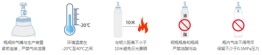 3. 钢瓶瓶体和瓶阀严禁污染油污等污染物。